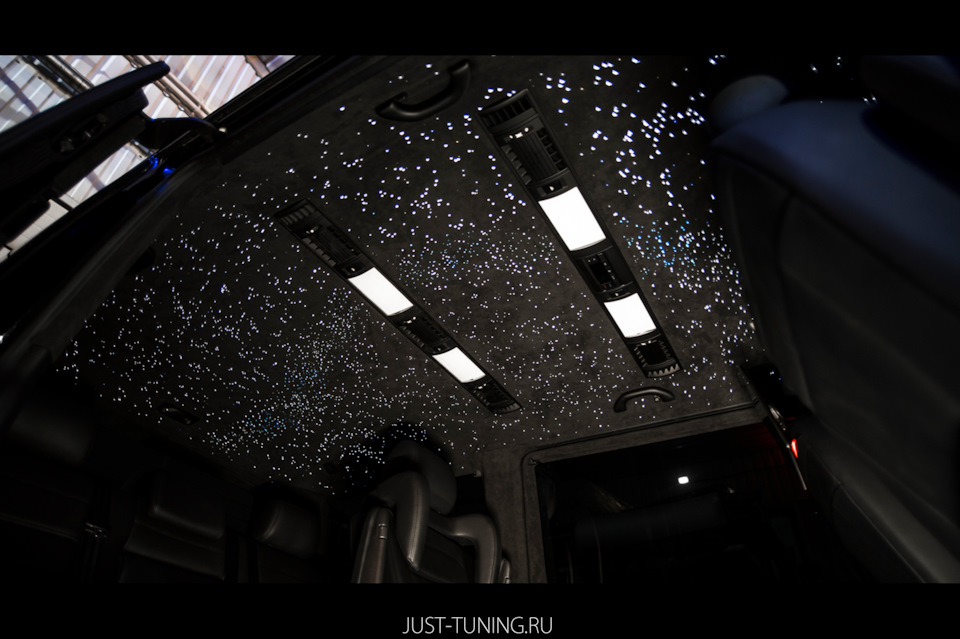 При необходимости перешьем сиденья и сделаем перетяжку потолка в шикарную алькантару или стильную черную ткань. Для удобства задних пассажиров можно установить дополнительную подсветку для ног и подстаканников, это смотрится очень стильно. Руль – самая важная часть в авто, центр его управления. С помощью перетяжки ему можно вернуть эффектный внешний вид.